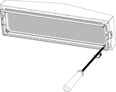 5. 将新的防尘网放置在设备前侧。使用十字螺丝刀旋紧防尘网上的3颗螺丝。