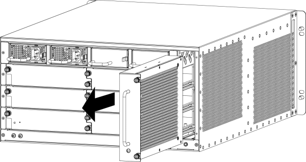 注意: 如果在系统运行时更换过滤网,请务必在1分钟内更换完毕,避免设备过热导致系统自动切断整机电源的现象发生。鉴于此,用户可首先向山石网科购买1个备用风扇盘,然后再进行冷却系统维护。