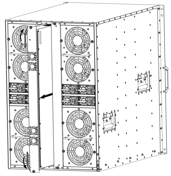 注意: 如果拆卸下SSM、IOM、QSM或者Bypass模块之后不再安装新的扩展模块,应安装上空白面板,防止灰尘进入机箱内部。