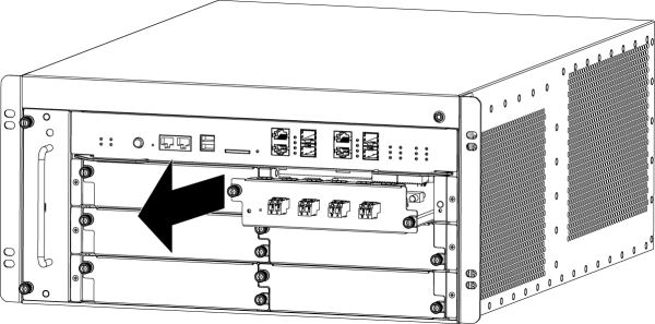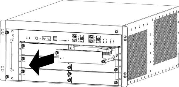 - 拉住松不脱螺丝,沿导轨水平方向将Bypass模块拉出扩展槽。