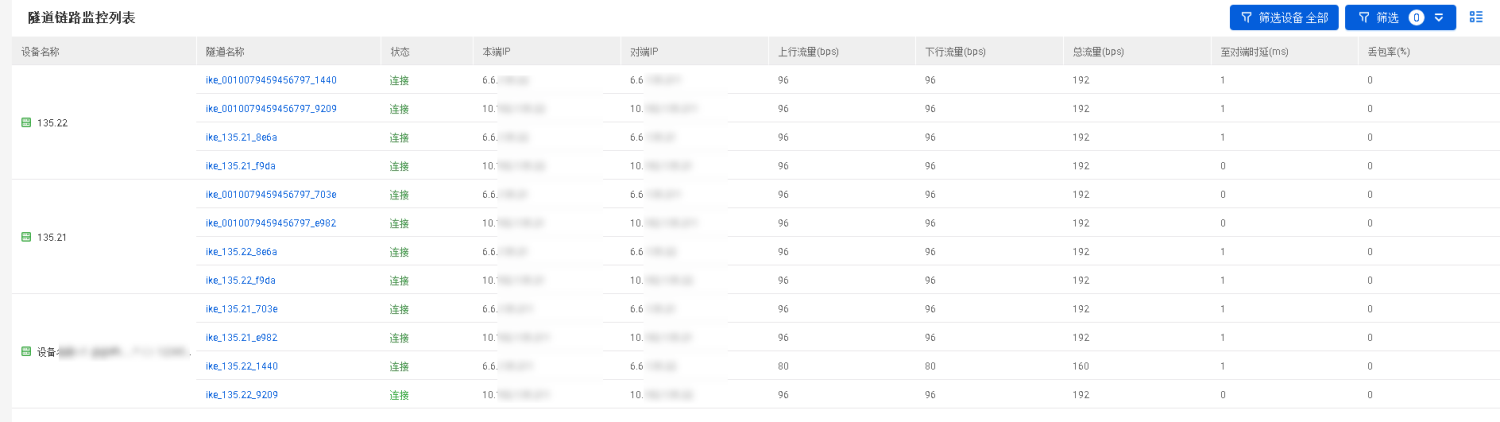 按钮,可以筛选指定设备的隧道链路监控信息。 - 点击