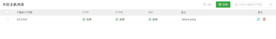 按钮,删除该可信主机;在可信主机列表中勾选多个可信主机,点击列表上方的