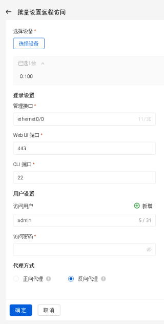 - 点击“确认”按钮,系统将自动下发设备远程登录配置给相应的设备。
