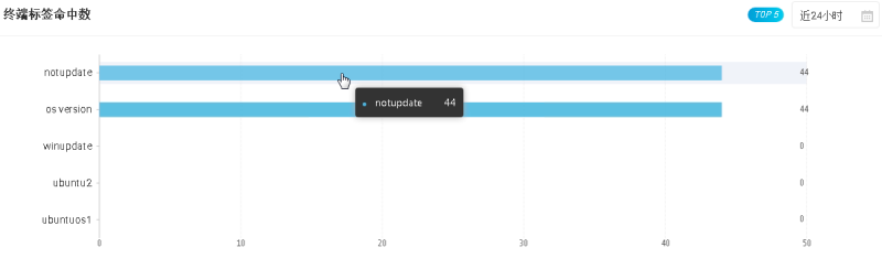 显示指定统计周期内(默认周期为近24小时)命中数排名前5的终端标签名称及其被命中的具体数值。