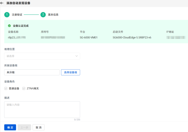 提示: ZTNA网关设备添加成功后,系统会将该设备信息同步至安全设备管理器,用户可以在安全设备管理器对其进行后续的配置管理。