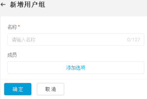 选项 说明 名称 输入用户组的名称,最多可输入127个字符。 用户 指定用户组所包含的用户组成员。 点击文本框,在弹出的用户列表中选中需要指定的用户或者用户组;点击某一成员的“×”按钮,将其移除出该用户组。